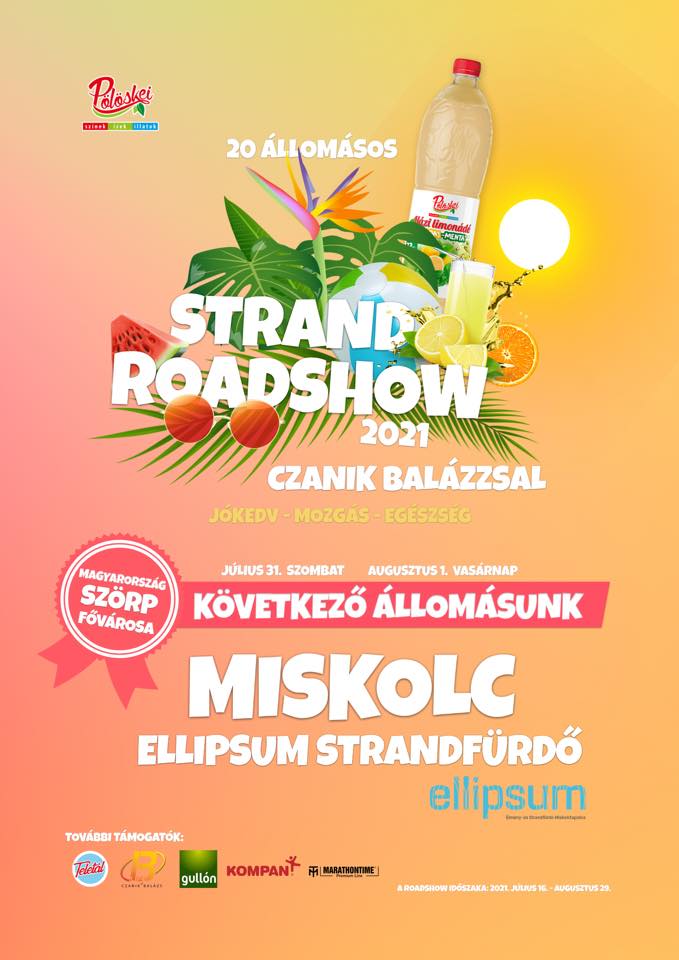 A Pölöskei Strand Roadshow országos turné keretein belül Czanik Balázs és csapata a legfinomabb Pölöskei ízekkel, szuper-szörpös ajándékokkal, valamint fergeteges hangulattal és programokkal fogadják a strandra érkezőket.