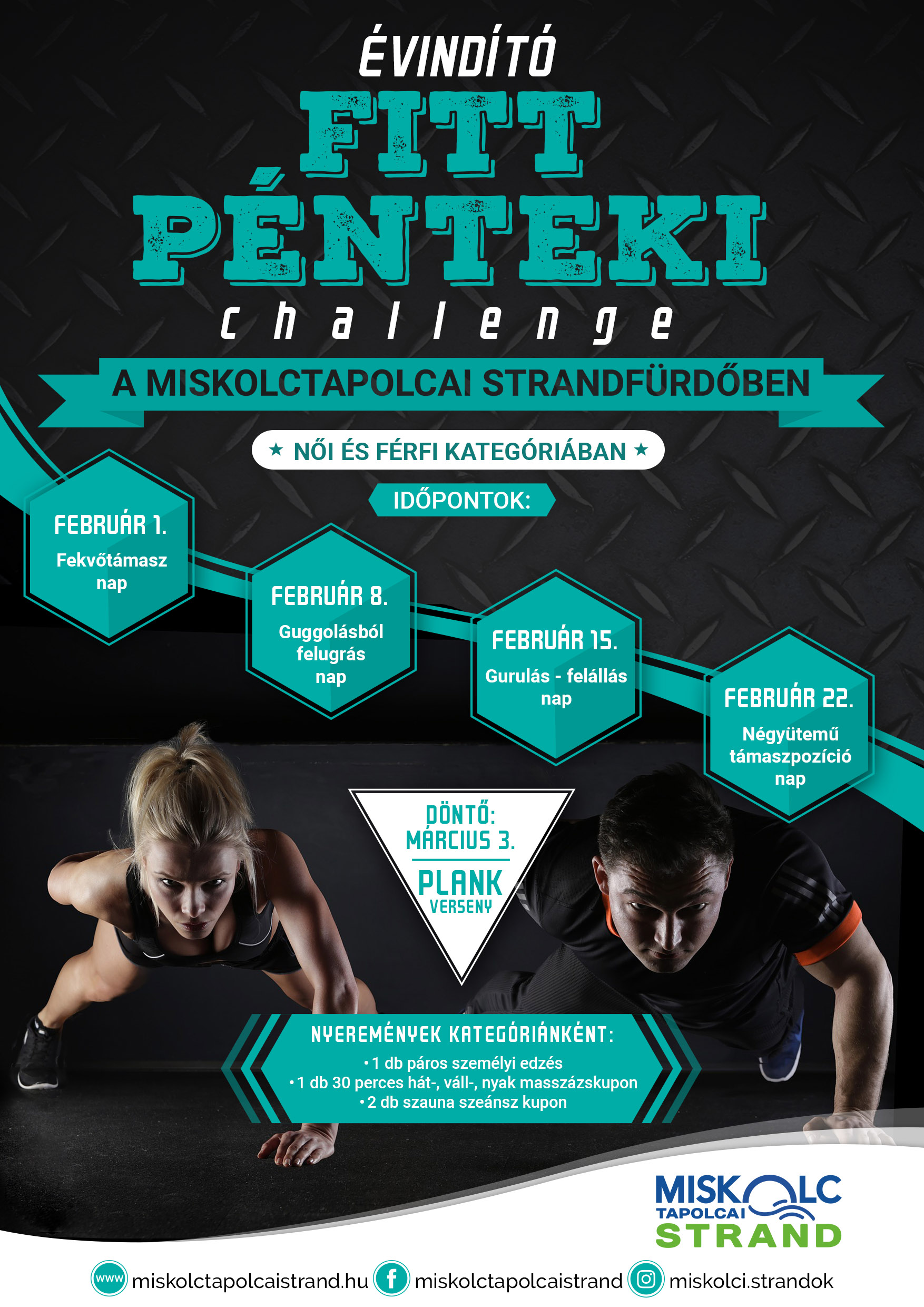 Újévi kihívásunk egy 4 gyakorlatból álló edzésprogramot tartalmaz, amelyet 4 héten keresztül heti 1 alkalommal (péntekenként) végeznek a résztvevők a Miskolctapolcai Strandfürdő Fitness termében.