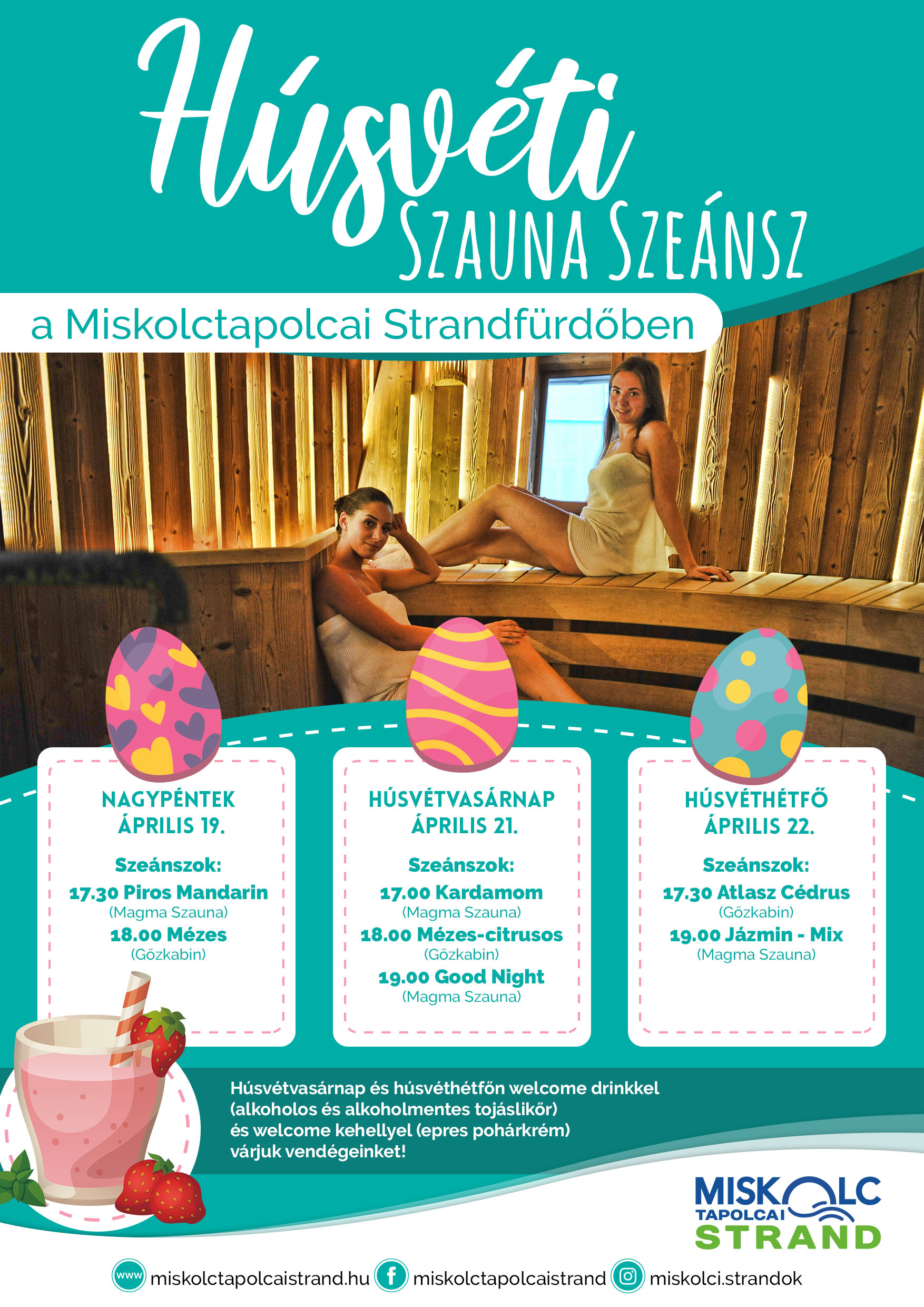 Húsvétvasárnap és húsvéthétfőn welcome drinkkel (alkoholos és alkoholmentes tojáslikőr) és welcome kehellyel (epres pohárkrém) várjuk vendégeinket!
