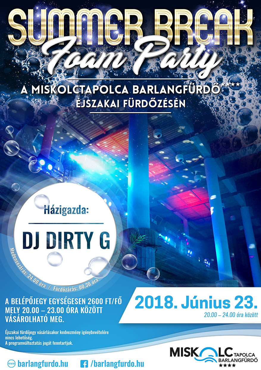 2018. június 23-án (szombaton) szenzációs sulizáró habpartyval várunk mindenkit a Miskolctapolca Barlangfürdőben!