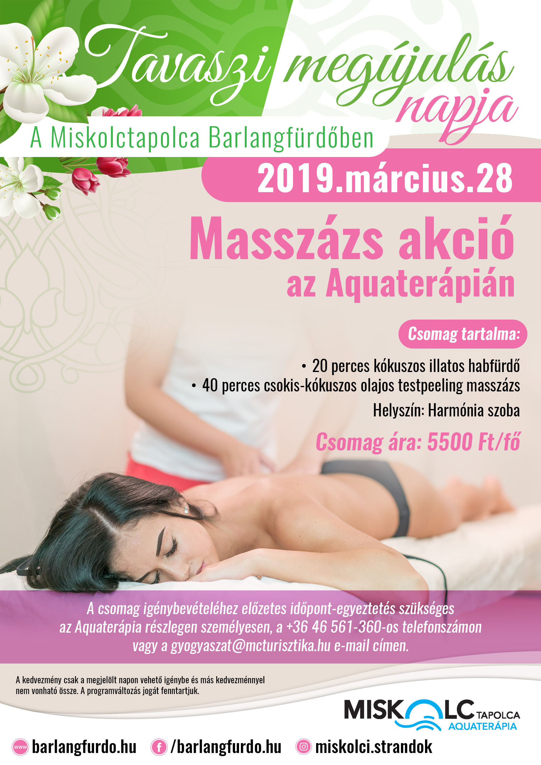 A csomag igénybevételéhez előzetes időpont-egyeztetés szükséges az Aquaterápia részlegen személyesen, a +36 46 561-360-os telefonszámon vagy a gyogyaszat@mcturisztika.hu e-mail címen.