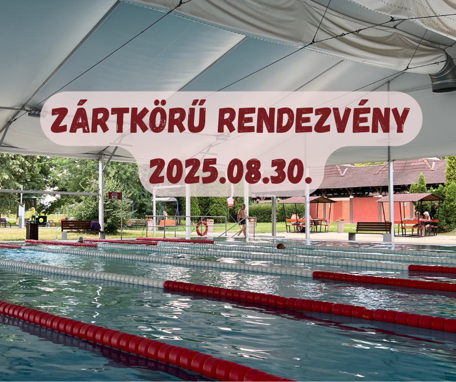 Felhívjuk vendégeink figyelmét, hogy 2025. augusztus 30-án (szombaton), zártkörű rendezvény miatt a Selyemréti Strandfürdő zárva tart!